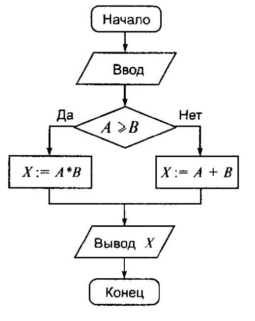 Дана блок-схема алгоритма. Чему будет равно X после выполнения алгоритма при a=3, b=5. Запишите полученное число.
