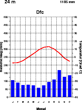 Этот тип климата отличается долгой холодной зимой и коротким холодным летом,когда температура июля не выше +5С