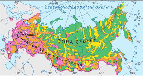 Какие из перечисленных субъектов России находятся в зоне ОСНОВНОГО расселения