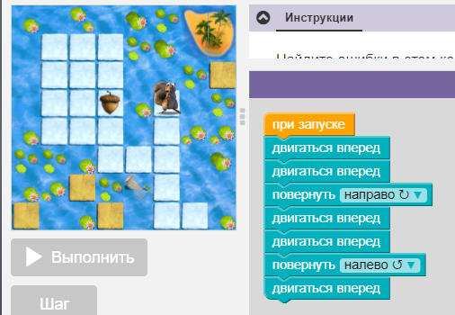 - Скрат не доберется до желудя, потому что не хватает блоков «двигаться вперед».
