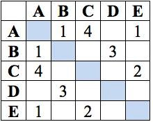 В таблице приведена стоимость проезда между соседними железнодорожными станциями. Числа, стоящие на пересечениях строк и столбцов таблицы, означают стоимость проезда между соответствующими соседними станциями. Если пересечение строки и столбца пусто, то станции не являются соседними.