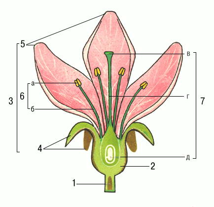 3. Какая часть цветка обозначена цифрой 7?