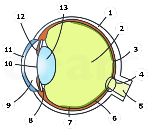 Установить соответсвие между структурами глаза и их описания