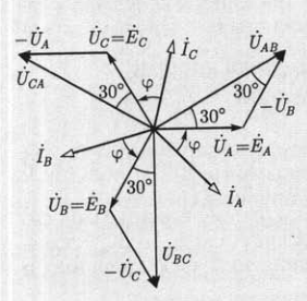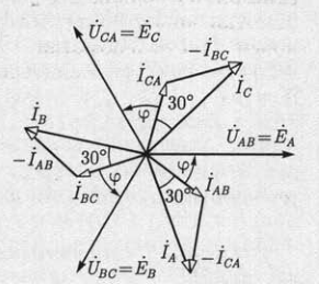 Исходя из рисунка, в симметричной трехфазной системе для действующих значений линейных и фазных токов справедливо: