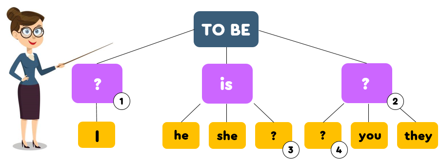 - 1. am, 2. are, 3. it, 4. we