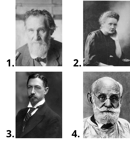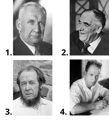 Соотнеси изображения знаменитых российских деятелей науки и культуры с обоснованием награды (Нобелевской премии), которую они получили. В ответе укажи только комбинацию цифр и букв, идущих по порядку, без пробелов, кавычек и каких-либо знаков препинания.