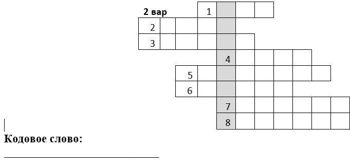 Решите кроссворд, по предлагаемой решетке. К клетку с цифрой обязательно впишите букву. Ответ запишите СЛОВОМ, ЗАГЛАВНЫМИ БУКВАМИ