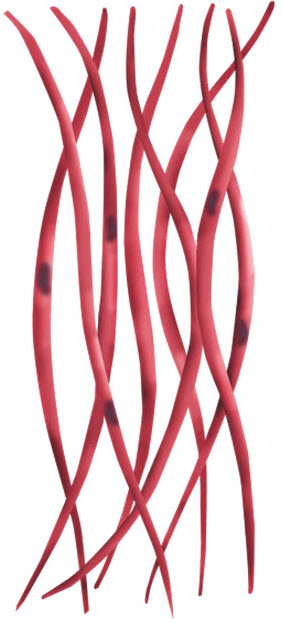 - Мышечные ткани состоят из тела с многочисленными отростками, среди которых выделяют короткие сильно ветвящиеся и длинные неветвящиеся отростки.