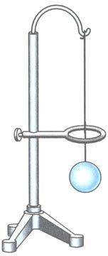 На уроке, на котором изучали тему «Тепловое расширение», учитель показал следующий опыт. Он продемонстрировал стальной шарик, подвешенный на нити к штативу. Вначале, при комнатной температуре, шарик легко проходил сквозь стальное кольцо (см. рисунок 1). Затем учитель нагрел шарик в пламени спиртовой горелки. После нагревания шарик застрял в кольце (см. рисунок 2). После того как шарик остыл, он снова стал легко проходить через кольцо.