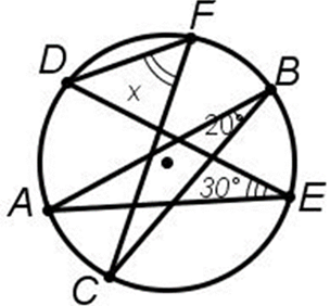 Найдите градусную меру угла DFC, если угол ABC равен 20°, а угол DEA равен 30°.