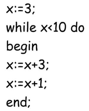i:=4; a:=12; while i<6 do begin a:=a+i; i:=i+1; end;