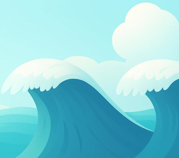 - На мелководье задняя часть волны может догонять переднюю, что приводит к увеличению высоты волны