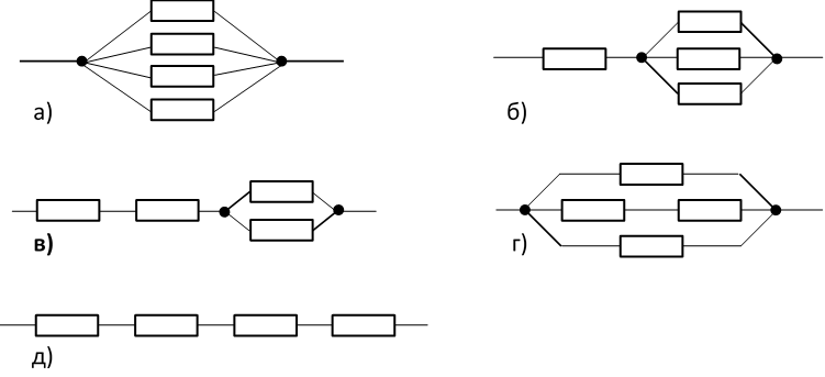 R1 = R2 = R3 = R4 = 1Ом каршылыктарын (сүрөттү кара) кандай схема менен туташтыруу зарыл?