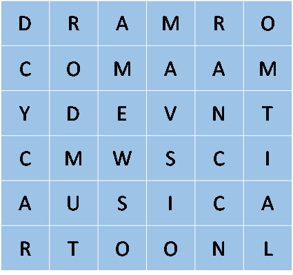 How many types of film can you find in the fillword? Write the number of words.