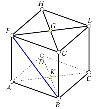 Дан куб. Найти угол между FB и плоскостью ULH