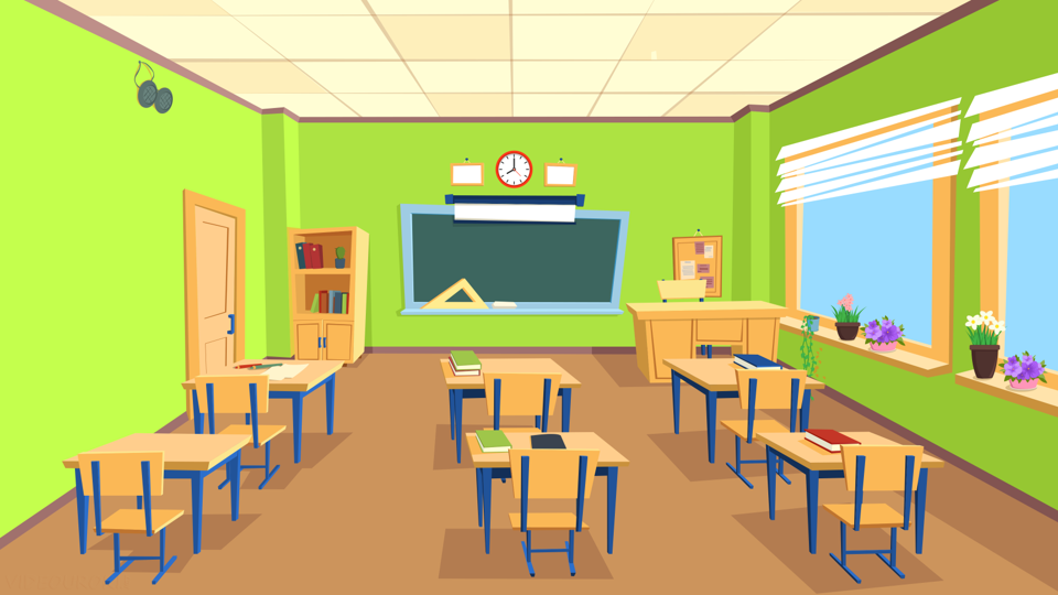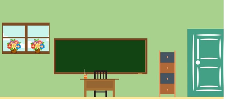 - Rechts sind ein Tisch und ein Stuhl für Lehrer.