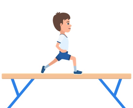 - Упражнения в равновесии выполняются на полу и на снарядах, а также на месте и в движении.