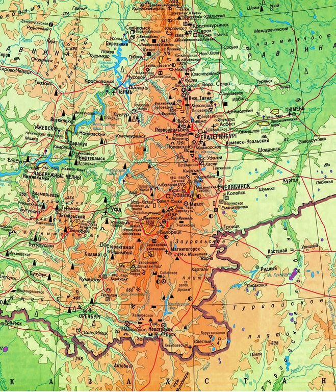 - Восточно-Европейской и Западно-Сибирской равнинами