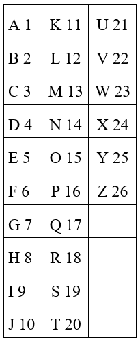 Кирилл шифрует английские слова, записывая вместо каждой буквы её номер в алфавите (без пробелов). Номера букв даны в таблице: