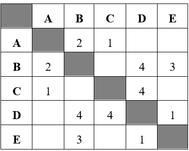 Между населёнными пунктами А, В, С, D, Е построены дороги, протяжённость которых (в километрах) приведена в таблице:
