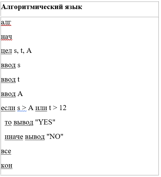 Укажите наименьшее целое значение параметра А, при котором для указанных входных данных программа напечатает «NO» пять раз.