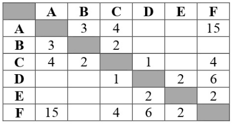 Между населёнными пунктами А, В, С, D, Е, F построены дороги, протяжённость которых (в километрах) приведена в таблице.