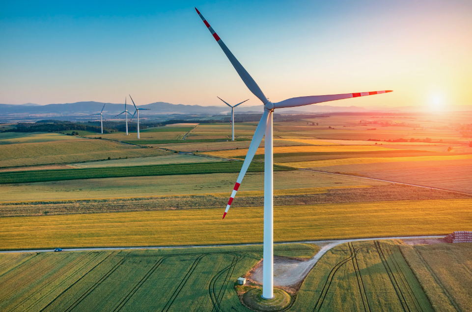 Как называется устройство, изображённое на рисунке? Оно использует силу ветра, чтобы создавать энергию. Составьте слово из букв. Ответ запишите существительным в именительном падеже. Например, томат
