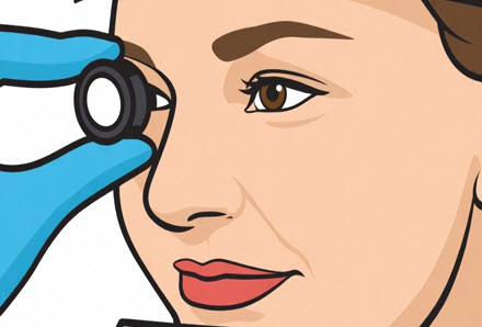 Как называется прибор, специальное зеркальце с лампочкой, которым врачи подсвечивают глаз изнутри? В ответе укажите только это слово в начальной форме, составленное из приведённых ниже букв. Например, стетоскоп