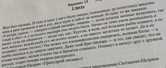 К какому литературному жанру относится произведение Салтыкова-Щедрина «Премудрый пискарь»?