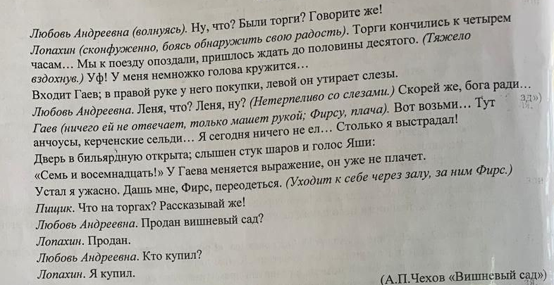 Узнайте героя пьесы «Вишневый сад» по отличительным чертам: поездки в Париж, дача во Франции, романтическая восторженность, мимолётность настроения.