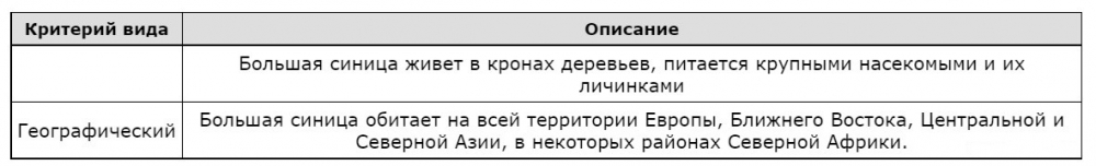 Рассмотрите таблицу «Критерии вида» и заполните пустую ячейку, вписав соответствующий термин.
