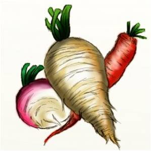 Соотнесите изображенные на рисунке корни (№1-4) их названия.