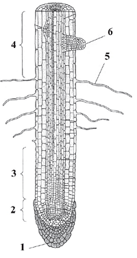 Установите последовательность размещения зон корня покрытосеменных растений, начиная от его окончания.