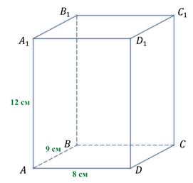 Измерения прямоугольного параллелепипеда раны 8 см, 9 см и 12 см. Пользуясь данными рисунка, найдите длину вектора