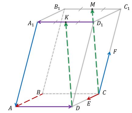 Пользуясь данными рисунка, дайте характеристику паре векторов (противоположно направленные, равные): вектор DK и вектор СM