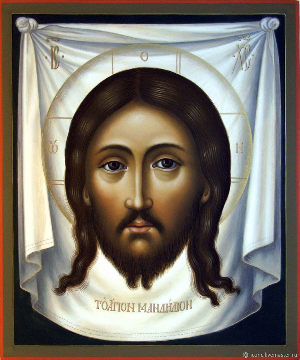 История появления иконы "Спас нерукотворный" гласит, что Эдесский царь Авгарь, страдающий проказой, уверовал в Спасителя и послал к Нему живописца, чтобы тот написал портрет Христа и передал Ему письмо с просьбой прийти и исцелить царя. Спаситель отказался прийти, но просил принести убрус (плат), омыл лицо водой и отёрся им. В результате на ткани запечатлелся Его Божественный лик. Плат был передан царю Авгарю, который с его помощью исцелился и обратил к истинной вере своих подданных, а Нерукотворный Образ был помещен в нише над городскими воротами и почитался как великая святыня.