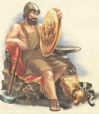 Прекрасные изделия выходили из кузни ......., не было им равных ни по красоте, ни по прочности. Словно живые летали изображенные птицы, реально жили люди, и даже ветер обретал жизнь в прекрасных творениях этого бога.