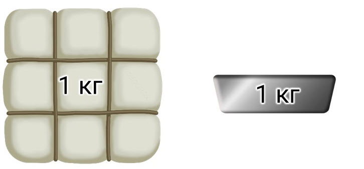 Верно ли, что рычажные весы придут в равновесие, если на одну их чашу положить килограмм пуха, а на другую - килограмм железа?