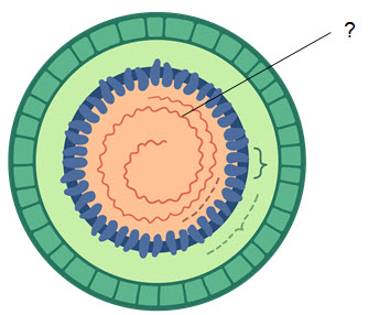Рассмотри рисунок "Строение вируса". Что на нём обозначено знаком вопроса?