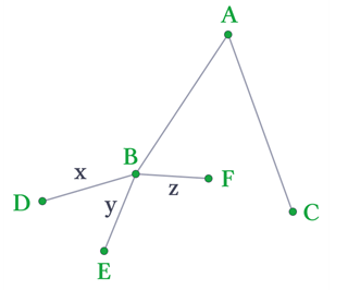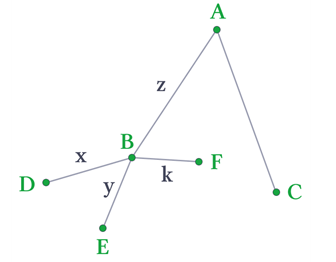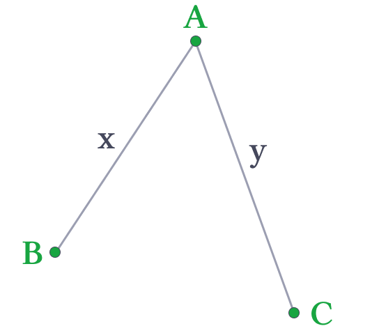 Вычисли вероятность цепочки наступления событий zx, если вероятность z= 0,2, x= 0,1, а вероятности событий из вершины A равны.