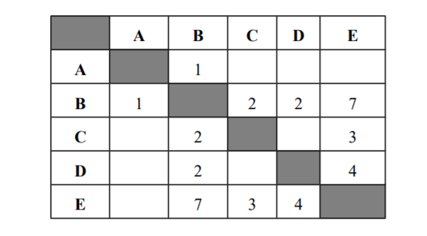 Задача. Между населёнными пунктами А, В, С, D, Е построены дороги, протяжённость которых (в километрах) приведена в таблице: