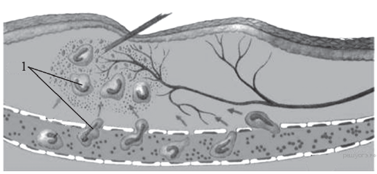 Рассмотрите схему воспалительного процесса. Что на ней обозначено под цифрой 1?