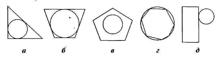 Выберите рисунки, на которых окружность не вписана в многоугольник