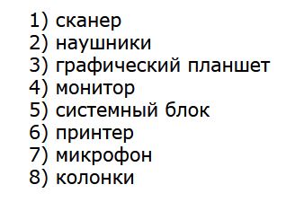 Выберите устройства вывода информации и запишите в ответе их номера в порядке возрастания.