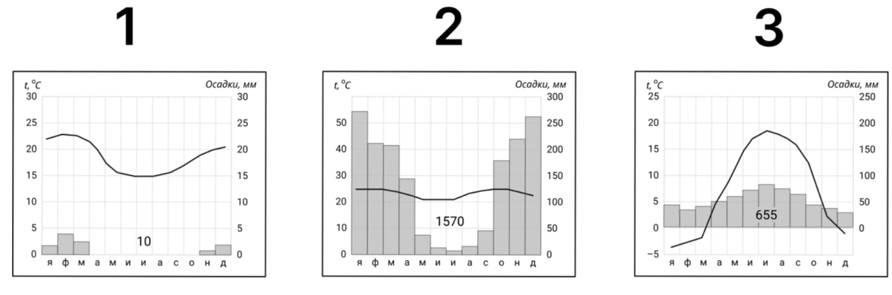 Определите годовое количество осадков на климатодиаграмме 2. В ответ запишите число
