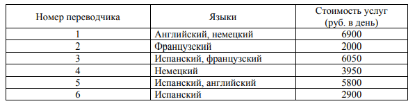 Для обслуживания международного семинара необъодимо собрать группу переводчиков. Сведения о кандидатах представлены в таблице.