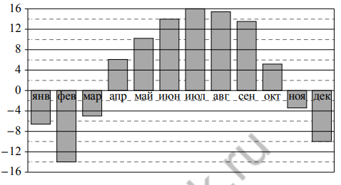 На диаграмме показана среднемесячная температура воздуха в Нижнем Новгороде за каждый месяц 1994 года. По горизонтали указываются месяцы, по верптикали - температура в градусах Цельсия. Определите по приведенной диаграмме наибольшую среднемесячную температуру в первой половине 1994 года. Ответ дайте в градусах Цельсия.