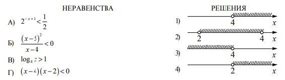 Каждому из 4 неравенств в левом столбце соответствует одно из решений в правом столбце. Выберите соответствие между неравенствами и их решениями.