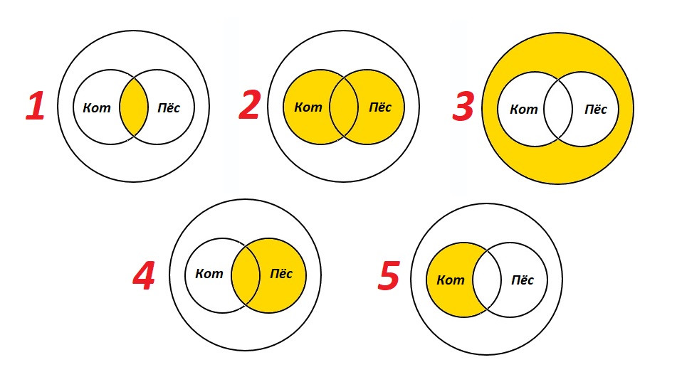 Какой схеме соответствует поисковый запрос Кот & (- Пёс) ? Введите номер этой схемы.