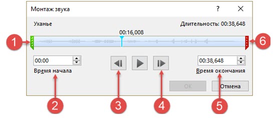 Укажите номера элементов, с помощью которых можно задать время конца воспроизведения аудиофайла. В ответ запишите номера в порядке возрастания без пробелов. Например, 1,2,3,4,5
